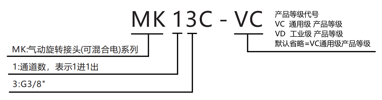 • · MK13C系列是1单通道气动旋转接头,1进1出,过压缩空气,真空等, 带G3/8"牙