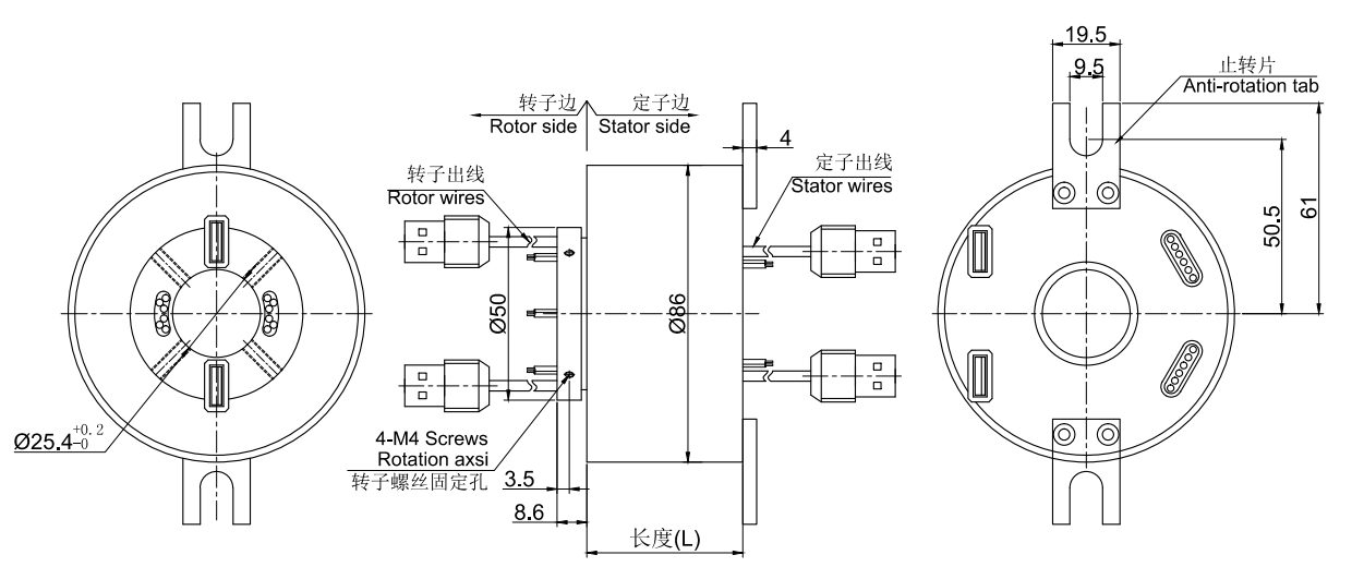 • · MUSB2252系列USB滑环,内孔25.4mm,外径为标准86mm的紧凑型整体式结构的2通道 USB1.0/USB2.0整体式精密导电滑环,